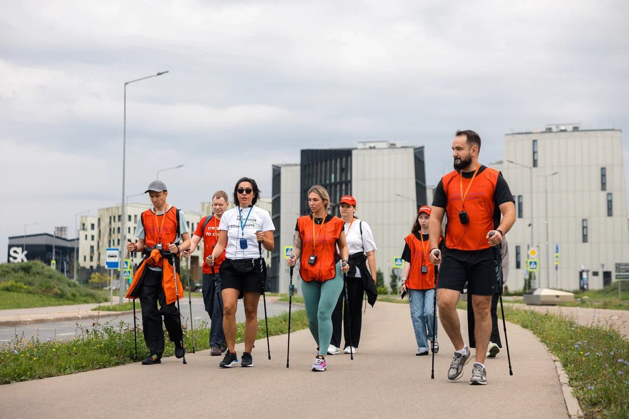 Одним из необычных форматов стал лекторий «Мысли в движении», совмещенный со скандинавской ходьбой. Пять ученых Сколтеха рассказали о будущем солнечной энергетики, искусственном интеллекте и влиянии запахов на активность мозга, совершая прогулку с участниками.