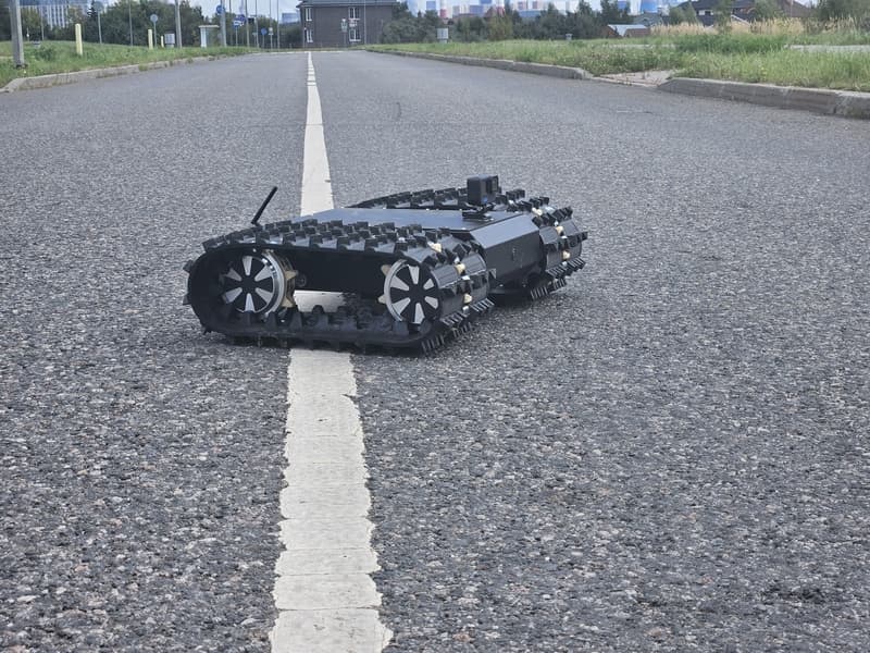 Этот беспилотник на гусеничном ходу передвигается по земле со скоростью до 10 км/ч и способен перевозить грузы массой до 35 кг. При этом сама платформа весит всего 30 кг.