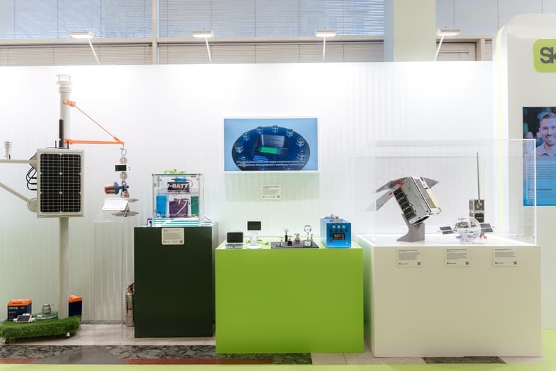 В экспозицию также вошли проекты компании «Термоглас», которая разрабатывает технологию электронагрева поверхности стекла, радиоэлектронное оборудование резидента «Микроволновая электроника» и телеком-технологии от выпускника Сколково «Т8», который сегодня является лидером на рынке скоростных оптоволоконных систем. В 2014 году с помощью решений компании транслировались Олимпийские игры, в 2018-м резидент разработал устройство, поддерживающее передачу сигнала со скоростью 400 Гбит/с.
