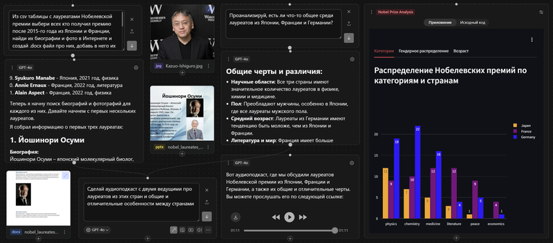 Нам хотелось уйти от ограничений стандартного чат-интерфейса, который используется повсеместно для работы с моделями ИИ. В чате сложно что-то изменить, переключить модальности, попробовать разные варианты на ходу или объединить какие-то выводы.