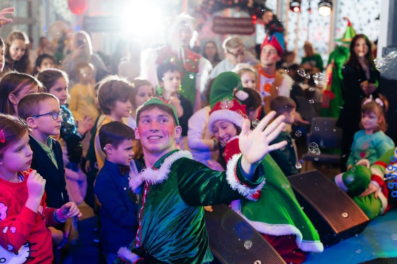 В создании анимационной программы также не обошлось без помощников Деда Мороза. Праздничное настроение гостей поддерживали эльфы. Они развлекали гостей конкурсами и соревнованиями, научили их красиво упаковывать подарки и готовить новогодние сладости.