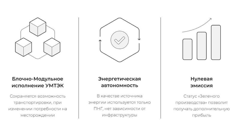 Базовым элементом является энергетический модуль. Он, помимо выработки электрической энергии, способен обеспечить месторождение и теплом, в условиях северных широт такая опция очень важна.