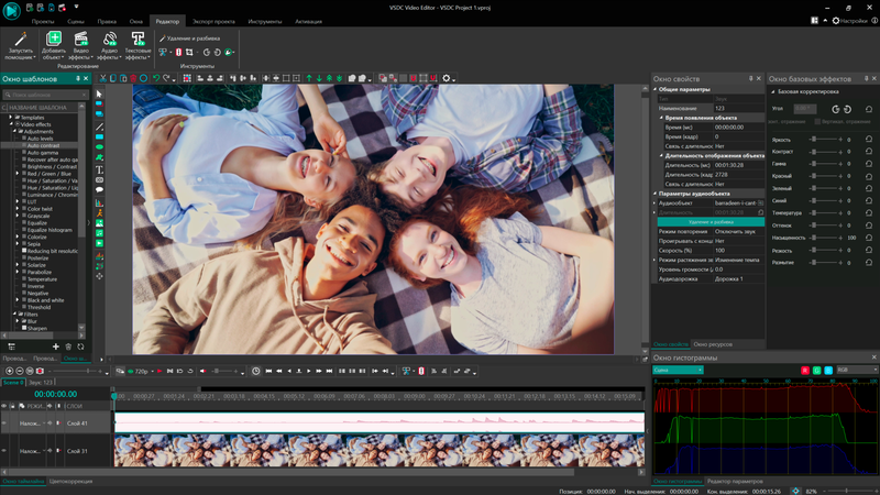 VSDC Video Editor — это видеоредактор с большим набором инструментов для создания видеороликов любой сложности, разработанный компанией Мультилаб — участником проекта «Сколково».