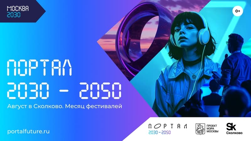 С 5 августа по 8 сентября в Инновационном центре «Сколково» состоится фестиваль «Портал 2030–2050». Он пройдет в рамках форума-фестиваля «Территория будущего. Москва 2030». Гостей ждут показы научно-популярного кино, кассовых отечественных фильмов последних лет, фестиваль вкуса, спортивные мероприятия и многое другое.