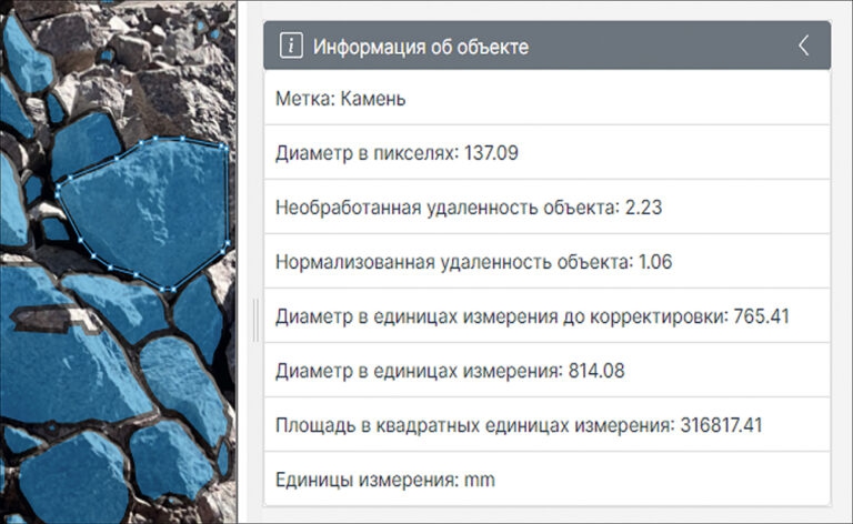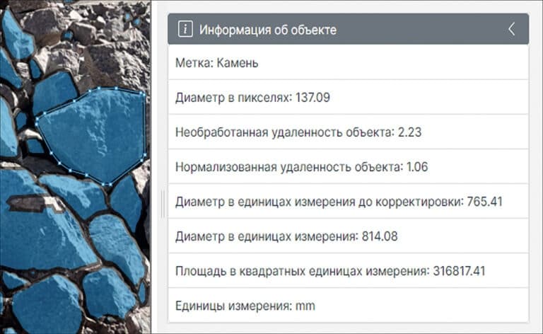 Таким образом, Система с применением методов компьютерного зрения на предприятии позволила создать многофункциональный, универсальный, рекомендательный подход для корректировки параметров буровзрывных работ и оценки гранулометрического состава на этапах добычи и обогащения. Система также позволяет передавать информацию в ГИС БВР для выбора оптимальных значений при проектировании массовых взрывов.