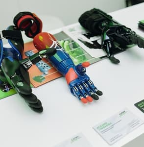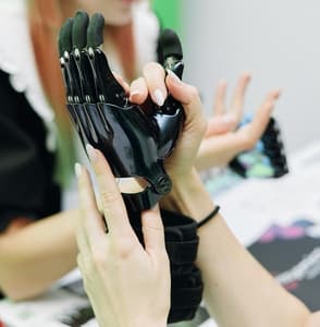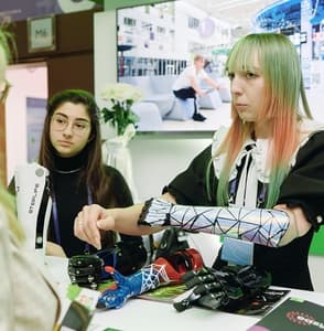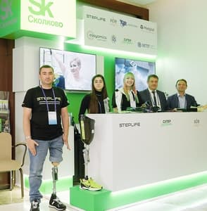 На стенде «Сколково» компания «Салют орто» продемонстрировала протезы Steplife P5 и Steplife B7. Это коленные модули, позволяющие имитировать механику сложного перемещения голени ноги человека во время ходьбы, а также позволяющие подниматься по ступенькам, а компания «Моторика» — актуальную линейку протезов рук с дизайнерскими решениями.