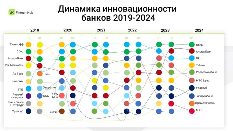 Вторую строчку в рейтинге занимает Альфа-Банк, который, как и Сбер сохраняет позиции с конца 2023 года. На третьем месте ВТБ, лидировавший в 2022 году. Новичком ТОП-5 стал Т-Банк, сменивший на четвертой позиции МТС Банк. Инновационную пятерку лидеров замкнул Россельхозбанк. Подробные результаты исследования, описание методологии и выводы доступны по ссылке.