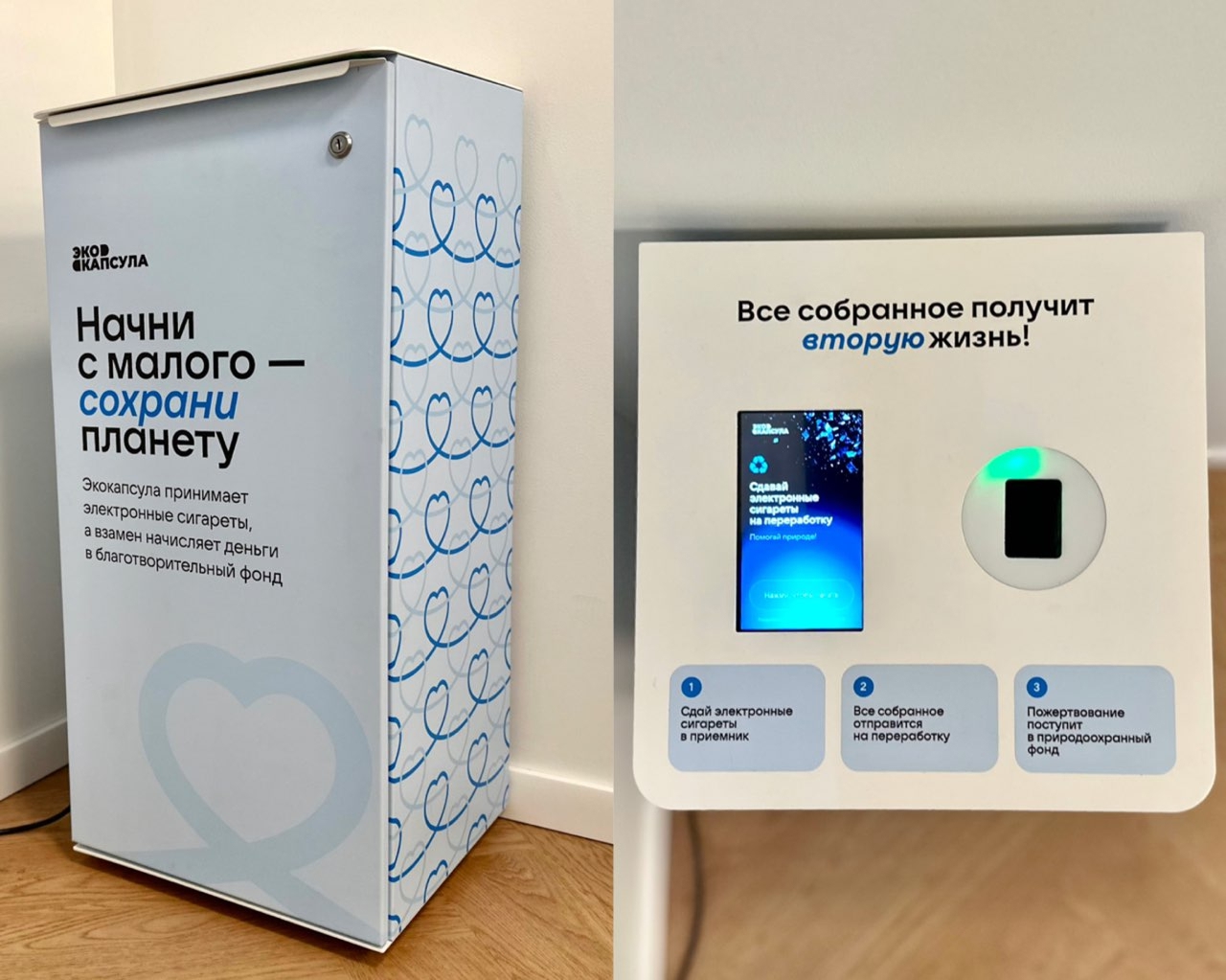 Компания «ЭкоПоинт», участник Сколково (Группа ВЭБ.РФ), установила в офисах VK специальные ЭкоКапсулы для сбора использованных электронных сигарет и испарителей. Реализация проекта направлена на ответственное отношение к электронным и сложным отходами в офисах, а также обеспечивает рабочим пространствам не только комфорт, но и экологичность.